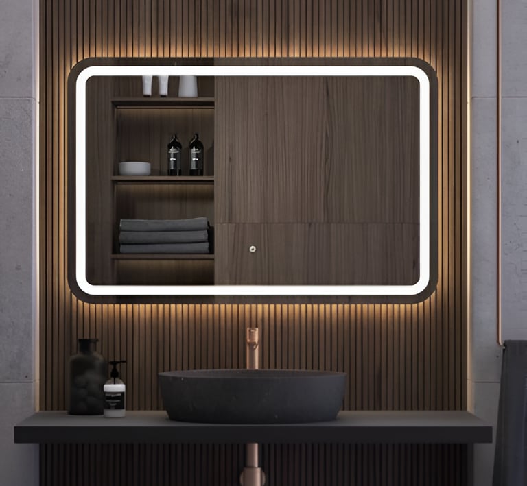 "Transforma tu baño en un espacio de estilo y funcionalidad con nuestros espejos y muebles de alta calidad."